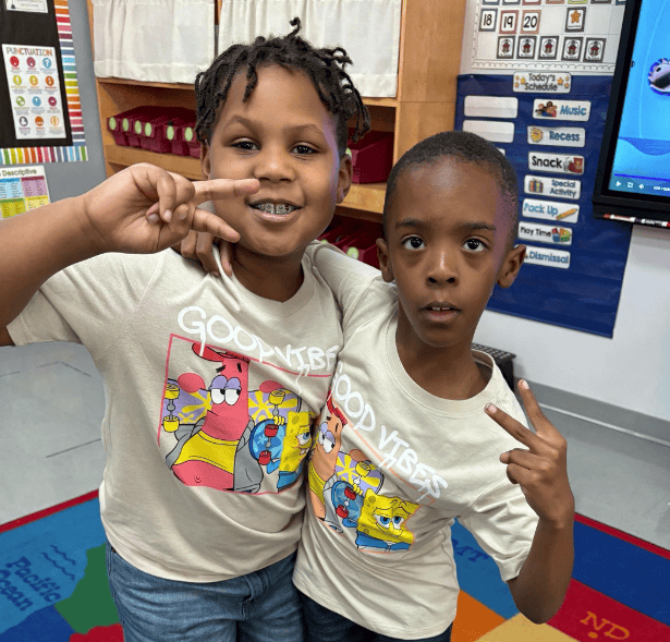 Pictured at top: Israel (right) attends school with his cousin, Charlie.